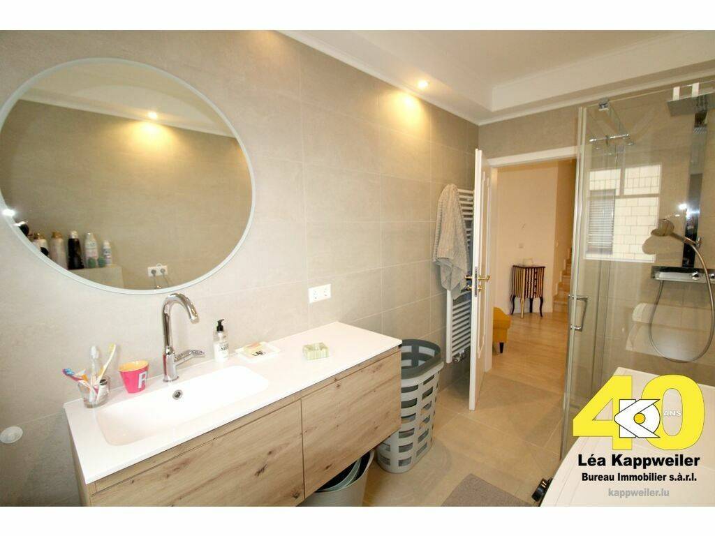Située dans une rue calme et résidentielle de Luxembourg-Merl, à proximité immédiate de toutes les commodités, cette maison de ville de 1989, entièrement rénovée entre 2002 et 2024, offre de beaux volumes, des prestations de qualité et un cadre de vie idéal pour une famille.