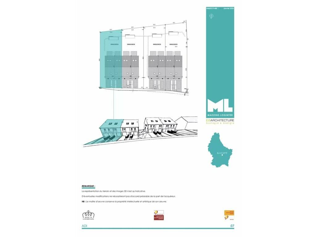 Un projet de standing signé par le promoteur de renom Arend & Fischbach, proposant une maison bifamiliale jumelée d’environ 176 m² habitables et 219 m² de surface totale, située dans un environnement calme et verdoyant à Blaschette (commune de Lorentzweiler), entre Luxembourg-Ville et Mersch, à seulement 20 minutes de Luxembourg-Kirchberg.