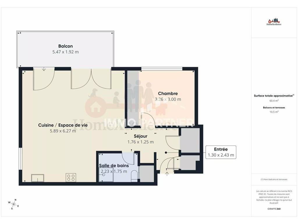 L’appartement se compose d’un hall d’entrée, d’un spacieux séjour lumineux avec cuisine ouverte entièrement équipée, d’une chambre confortable, d’une salle de bains, d’un WC séparé, ainsi que d’un balcon offrant une vue dégagée sur les espaces verts et l’aire de jeux située face à la résidence.