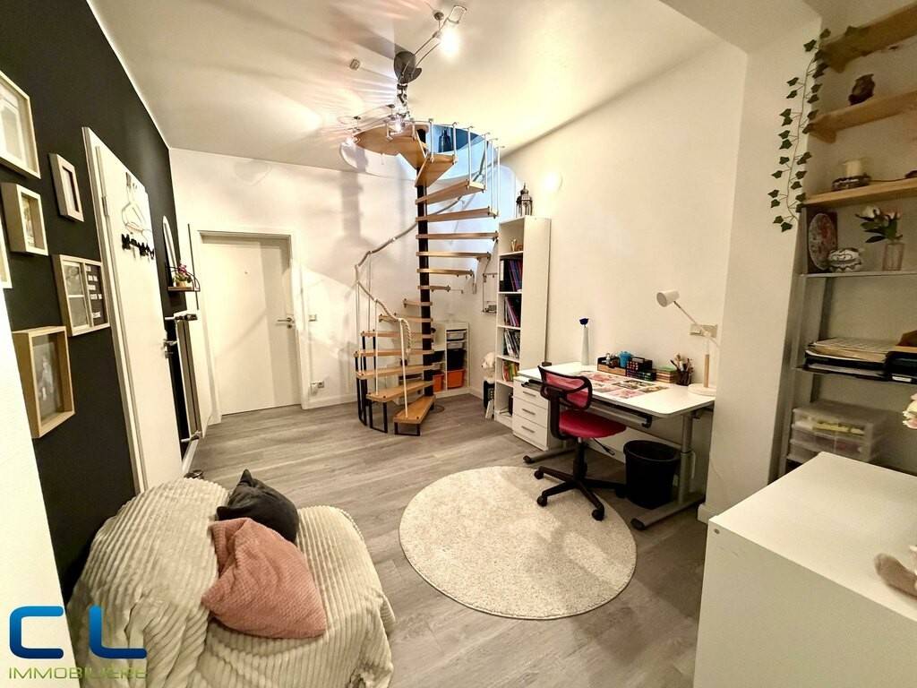 Rez-de-chaussée – 83 m² : - Hall d'entrée accueillant - Salle de douche - Grande chambre à coucher - Vaste salon / salle à manger - Cuisine équipée ouverte - Accès à une loggia Sous-sol – 33 m²: Accessible depuis le salon par un escalier en colimaçon, il se compose de : - Un espace ouvert (bureau ou espace polyvalent) - Une chambre ou atelier - Une pièce de rangement