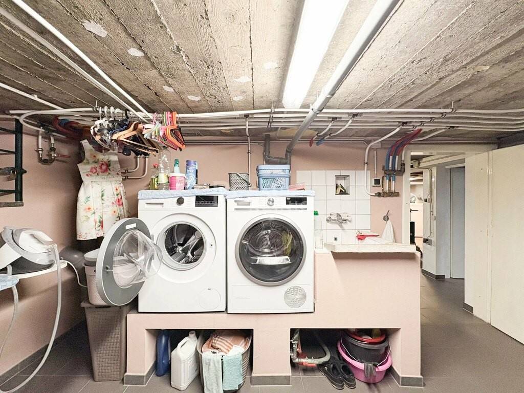 sous-sol: cuisine secondaire, atelier, buanderie, chaufferie rez-de-chaussée: hall d'entrée, living avec feu ouvert, cuisine équipée, salle de bains, garage 1er étage: 3 chambres à coucher dont 2 avec dressing, bureau, salle de bains, sous-toit: grenier aménageable