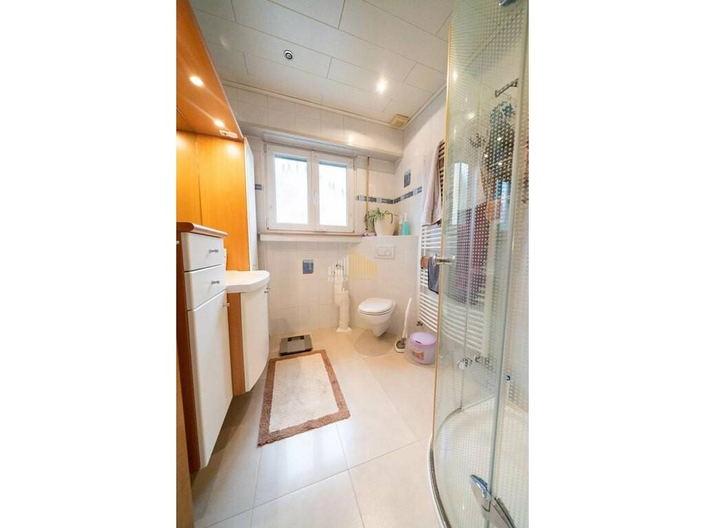 La maison dispose de deux étages massifs avec des plafonds en béton et d'un total de quatre chambres à coucher, qui offrent de multiples possibilités d'utilisation pour les familles ou les bureaux à domicile. En 2019, de nouveaux sols ont été posés dans toute la maison. Dans les chambres à coucher, un sol en vinyle clic de haute qualité et du carrelage dans la cuisine, le couloir et la salle de bain. Les portes intérieures en chêne massif, particulièrement haut de gamme, soulignent l'exigence qualitative de la propriété.