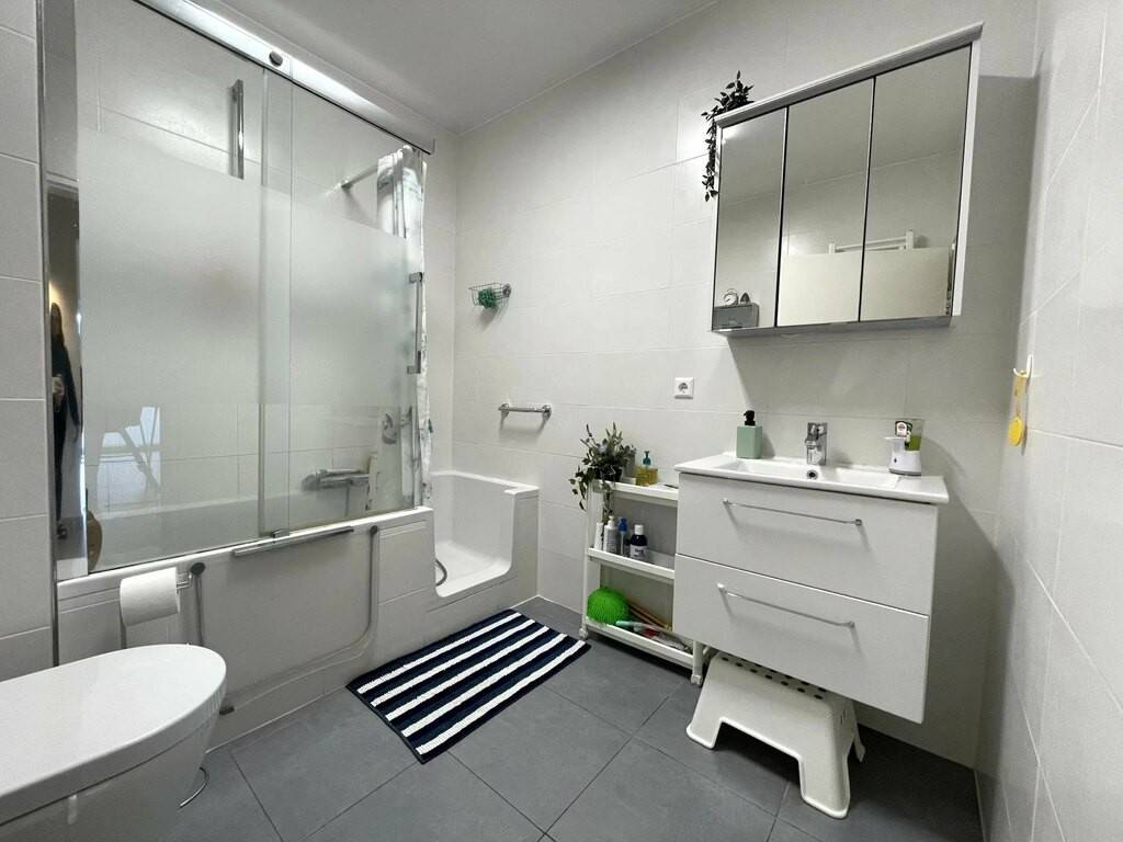 L’appartement comprend trois chambres à coucher de belles dimensions, pouvant être aménagées selon les besoins en chambres d’enfant, chambre parentale ou bureau. La salle de bain, claire et fonctionnelle, complète l’ensemble. L’appartement se présente dans un excellent état d’entretien et bénéficie d’une luminosité optimale dans toutes les pièces.