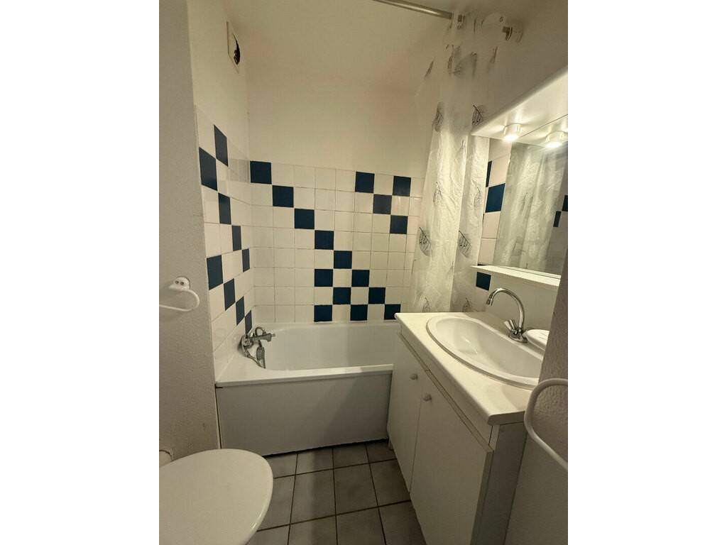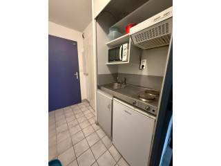 Le studio est composé d'une entrée, d'un séjour (avec table, lit, table de chevet, bureau, placard/penderie, étagères), d'une kitchenette équipée (plaques électriques, micro-onde, réfrigérateur, hotte), et d'une salle de bains avec WC.