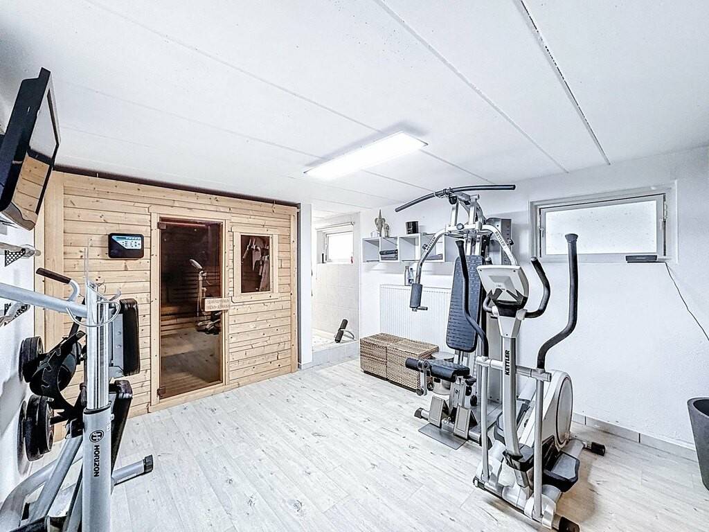 Sous-sol - Espace bien-être avec sauna et salle de fitness - Chaufferie - Buanderie - Garage pouvant accueillir jusqu’à 4 véhicules