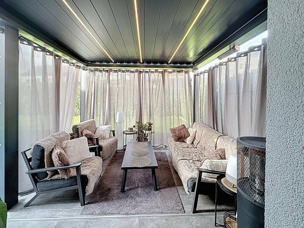 Avec une surface habitable d’environ 270 m², la propriété séduit par ses espaces lumineux, ouverts et une distribution intérieure particulièrement bien pensée. Le vaste séjour/salle à manger avec cheminée ouverte représente le cœur de la maison et offre un accès direct à la terrasse, à la véranda haut vue gamme (4 × 4 m, construite en 2023) ainsi qu’au jardin soigneusement aménagé et entièrement clôturé. La piscine extérieure constitue un atout majeur et apporte une véritable atmosphère de vacances durant les beaux jours.