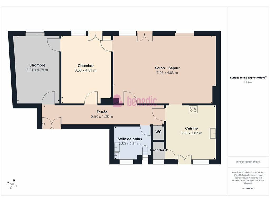 Vous apprécierez ses espaces judicieusement agencés : un vaste salon-séjour avec balcon filant et cuisine équipée attenante avec balcon et buanderie / cellier, deux chambres, une salle d'eau avec toilettes et des toilettes séparées.