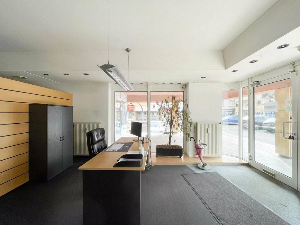Bureau d'une surface de +/-88m2 avec des grandes vitrines garantissant une bonne visibilité dans un immeuble à usage mixte et bien fréquenté avec accès facile se compose comme suit: