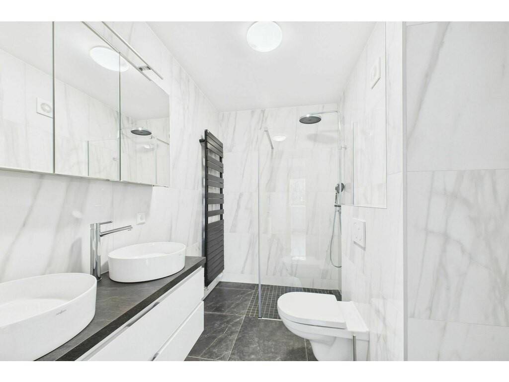 Confort : ascenseur - climatisation - placards intégrés - parquet en bois - 2 douches à l'italienne - espace buanderie dans l'appartement - 2 WCs - fenêtres triple vitrage - volets électriques - fibre internet - porte de garage automatique