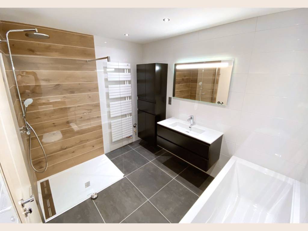 AGENCEMENT ------ • Hall d’entrée avec meuble sur mesure (CJ Design – 2018) Porte d’entrée de l'appartement remplacée en 2020 • Séjour très lumineux avec cheminée encastrée + espace bureau/télétravail ou coin jeux • Accès direct au jardin plein sud entièrement aménagé en 2022 : - terrasse en bois exotique, - claustra design en bois, - panneaux végétalisés de lierre, - plantations de qualité (amélanchier, haie de laurier portugais) • Cuisine séparée équipée, plan de travail en granit noir • 1 chambre 17 m² avec accès terrasse arrière (rénovée en 2021) • 1 chambre 12 m² • Salle de bains rénovée (2020) : baignoire, douche, lavabo, WC • WC séparé avec lavabo