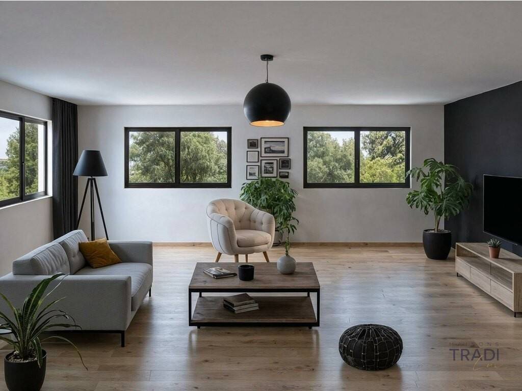Cette maison avec 3 côtés libres offre un grand sous-sol de 79 m² avec garage, ainsi qu'une belle terrasse accessible depuis l'espace cuisine/living. Sale Details - Honoraires à la charge: Non communiqué - Surface du terrain: 9.01 ares Reference agence: E3P:14455-5743653