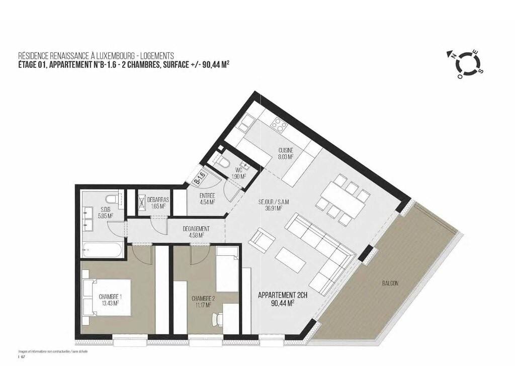 A vendre, appartement 2 chambres au 1er étage de la résidence Renaissance située à Luxembourg-Belair.