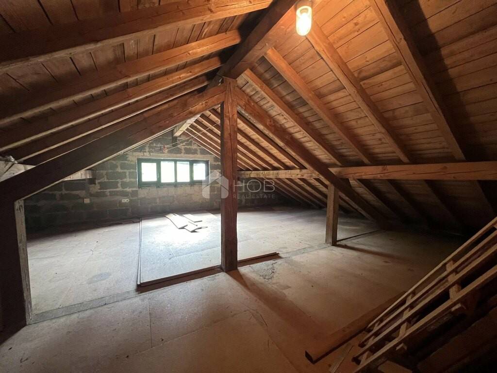 Un atout particulier est le grenier aménageable d’environ 60 m² : grâce à une belle hauteur sous plafond, il est possible d’y créer un espace de vie ou de travail supplémentaire.
