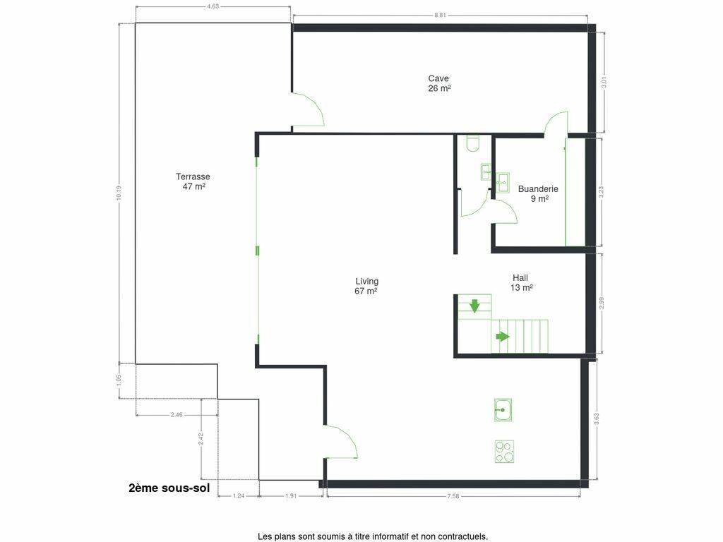 Une buanderie, une cave, un hall et un WC séparé complètent cet espace, pensé pour une vie quotidienne fluide, confortable et parfaitement organisée.