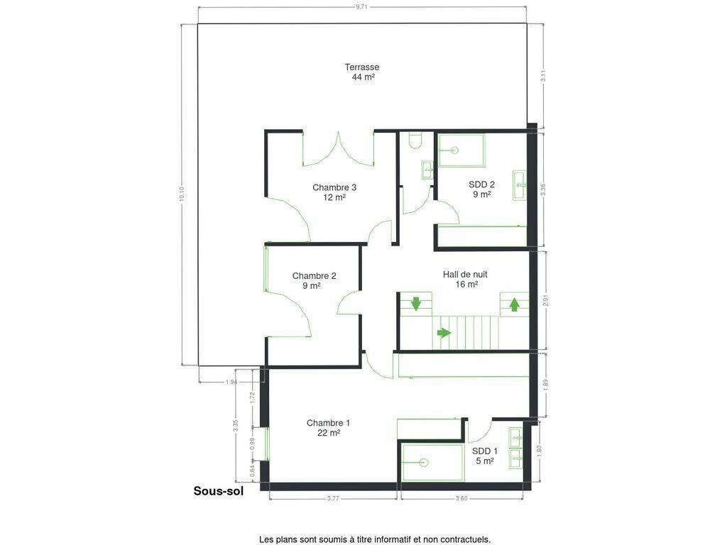 Sous-sol (niveau nuit) :