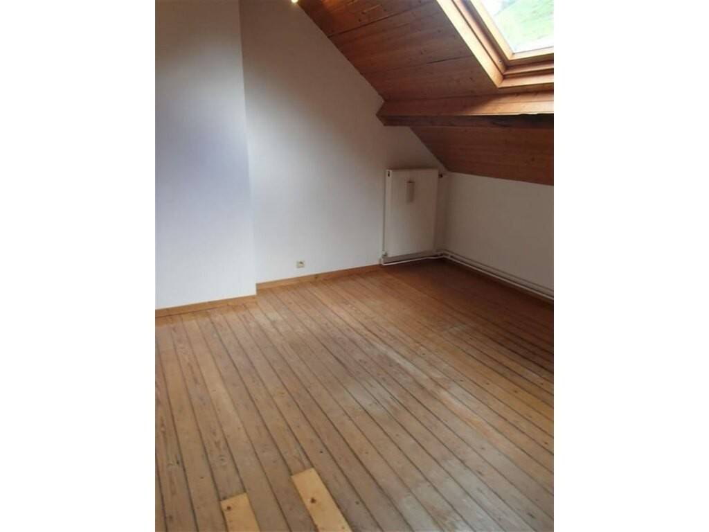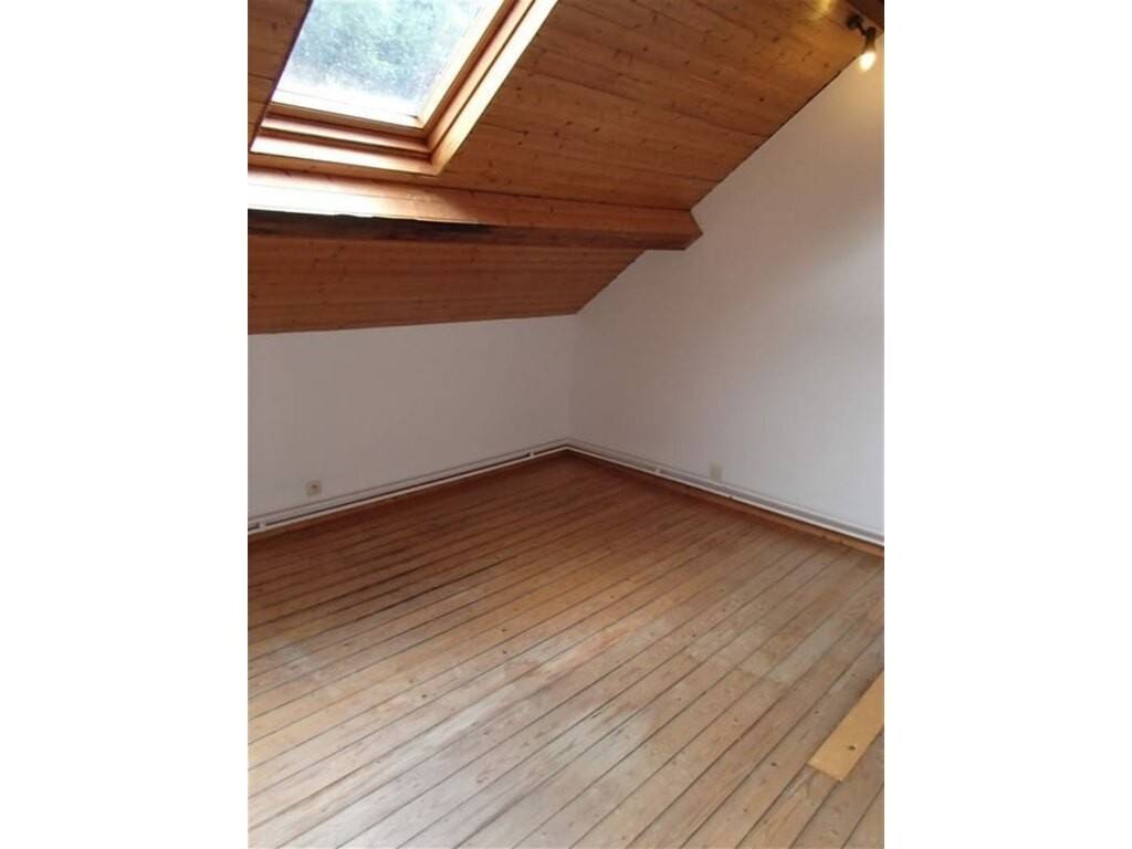 Le deuxième étage dessert deux chambres mansardées de 14m² et une en L de +/- 9 m².