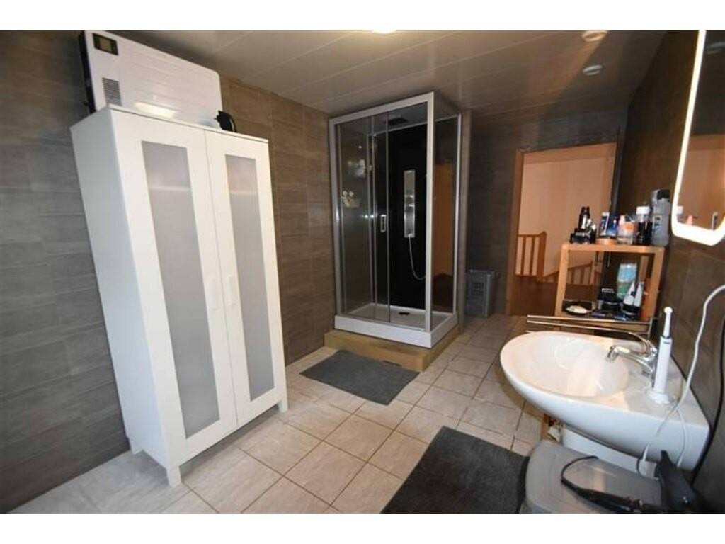 Atouts techniques Électricité conforme PEB : C Chauffage central gaz (2024) Poêle à pellets entre le séjour et la salle à manger Châssis PVC double vitrage Toiture bonne impression Dalles béton à chaque niveau Façade latérale isolée