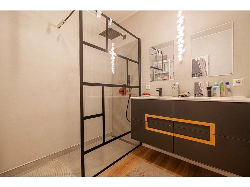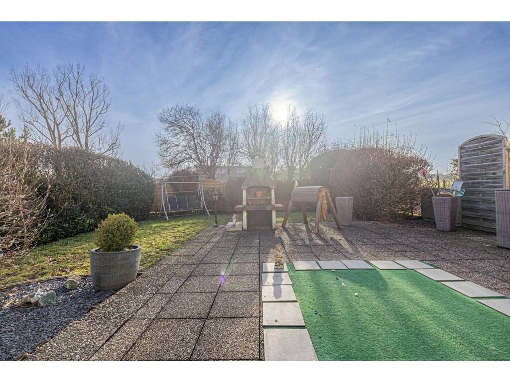 - Hall d’accueil avec armoires intégrées - Salon et salle à manger avec cuisine ouverte, offrant un accès direct à la terrasse et au jardin - Deux chambres à coucher (possibilité de créer une troisième chambre) - Salle de douche équipée d’un double lavabo et d’un WC - WC séparé