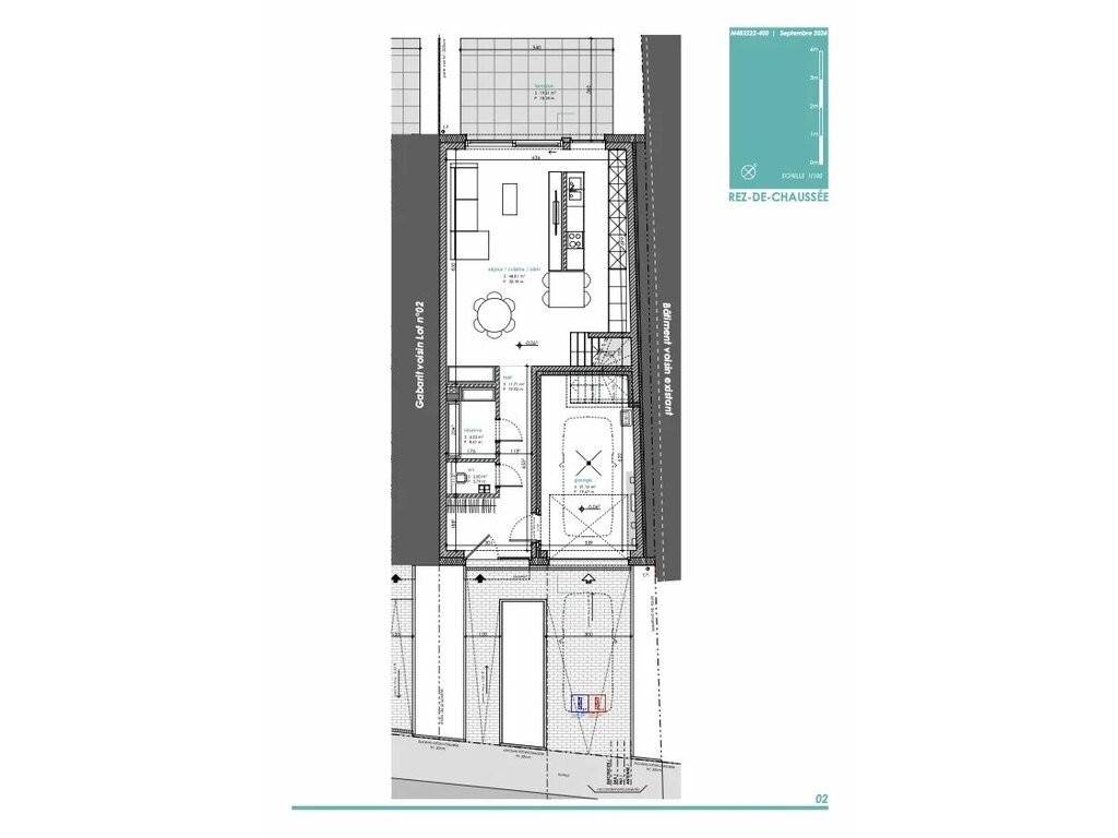 - séjour/salon avec cuisine - terrasse avec 19,36 m2 - réserve - wc - garage