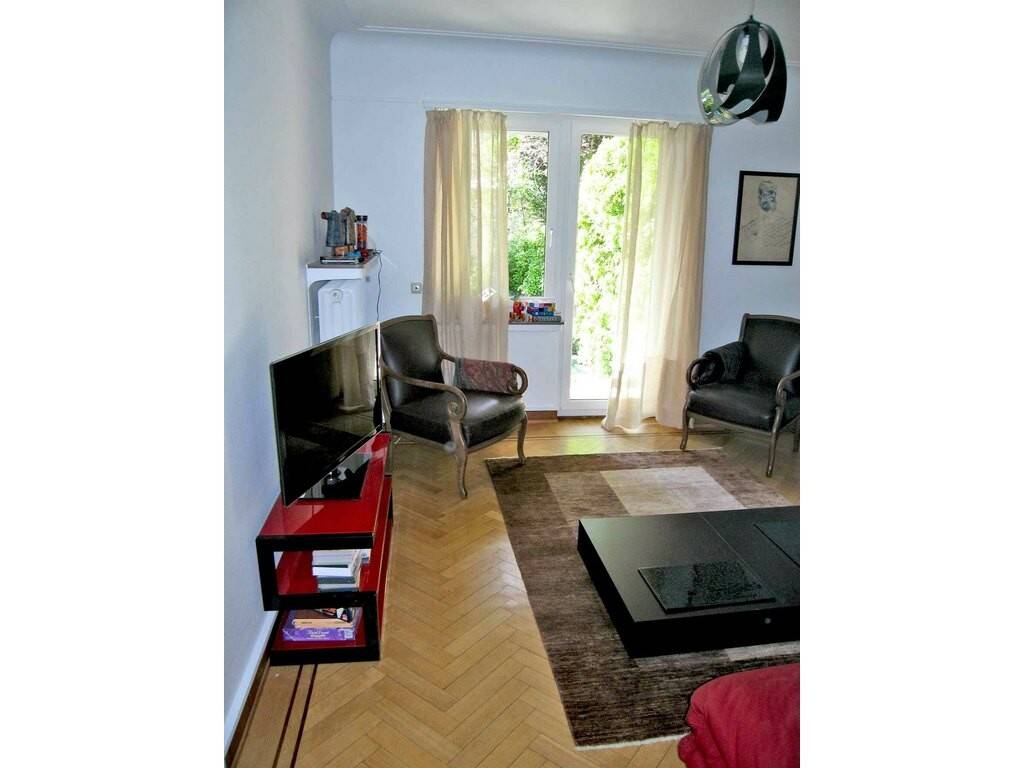 A Luxembourg Belair dans un petit immeuble de standing, un bel appartement de style, rénové, avec jardin privatif arboré, offrant une entrée spacieuse desservant deux chambres à coucher sur parquet, un beau living sur parquet avec accès à un balcon, une cuisine équipée avec balcon, une salle de bain avec baignoire , un wc séparé, une cave privative en sous sol et un garage fermé est disponible à la location.