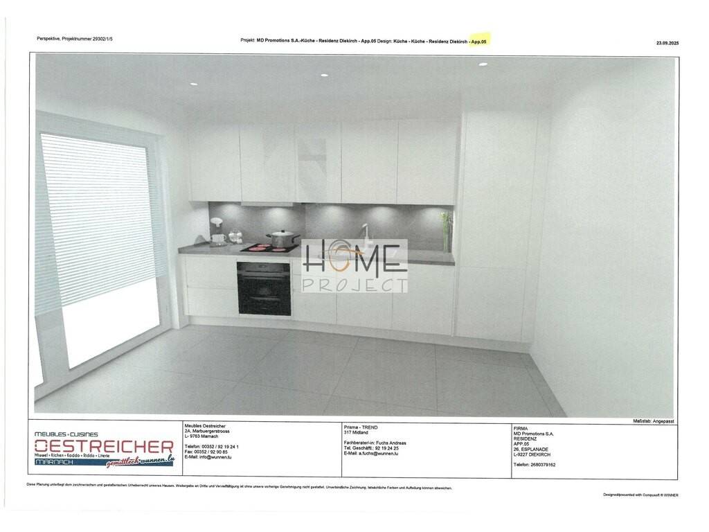 Appartement tout neuf - 1 chambre avec balcon à Diekirch. Home Project S.A. vous propose en location un joli appartement neuf de 89,04m², situé au 3ème étage (sans ascenseur) d'une nouvelle résidence construite en 2025, idéalement localisée sur l'Esplanade à Diekirch. Disponible pour le 1ier avril 2026 Composition : Hall d'entrée Salon/Séjour lumineux Cuisine équipée ouverte sur le séjour avec accès au balcon Dressing 1 chambre à coucher Salle de douche moderne comprenant : WC, lavabo et douche Cave privative Pas de place de parking