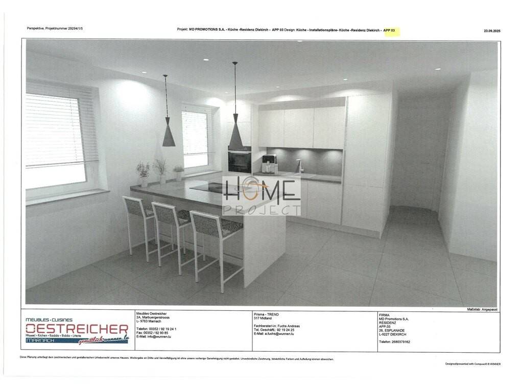 Appartement tout neuf - 1 chambre sans balcon à Diekirch Home Project S.A. vous propose en location un joli appartement neuf de 59,37m², situé au 1ier étage (sans ascenseur) d'une nouvelle résidence construite en 2025, idéalement localisée sur l'Esplanade à Diekirch. Disponible pour le 1ier avril 2026 Composition : Salon/Séjour lumineux Cuisine équipée ouverte sur le séjour Débarras pratique WC séparé 1 chambre à coucher Salle de douche moderne comprenant : WC, lavabo et douche Cave privative Pas de place parking
