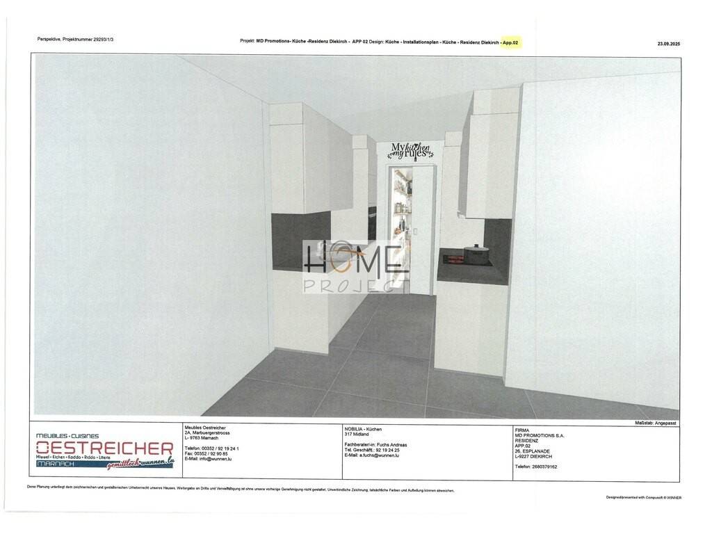 Appartement tout neuf - 1 chambre avec balcon à Diekirch Home Project S.A. vous propose en location un joli appartement neuf de 51,92 m², situé au 1ier étage (sans ascenseur) d'une nouvelle résidence construite en 2025, idéalement localisée sur l'Esplanade à Diekirch. Disponible pour le 1ier avril 2026 Composition : Hall d'entrée Salon/Séjour lumineux avec accès au balcon Cuisine équipée ouverte sur le séjour Débarras pratique 1 chambre à coucher Salle de douche moderne comprenant : WC, lavabo et douche Cave privative Pas de place de parking