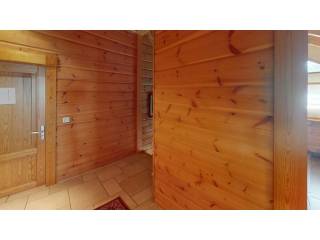 Maison principale Hall d’entrée accueillant Grand salon lumineux avec cheminée ouverte Cuisine moderne entièrement équipée Plusieurs chambres confortables Salle de bain avec douche à l’italienne et salle de bain design supplémentaire Suite parentale avec sauna privatif Grenier aménagé pour le stockage