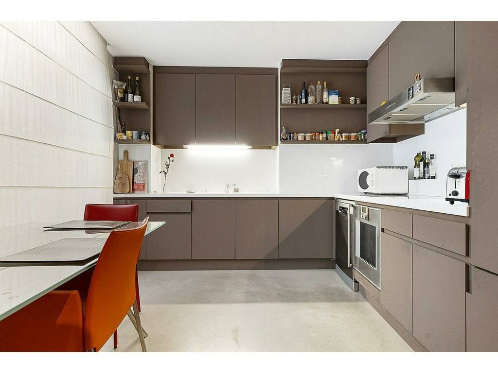 La pièce-à-vivre comprend le salon, un espace bureau et la salle à manger avec une vue imprenable sur le Grund et Clausen. Séparée de cet espace, la cuisine équipée dispose d'une large ouverture et d'un espace repas.