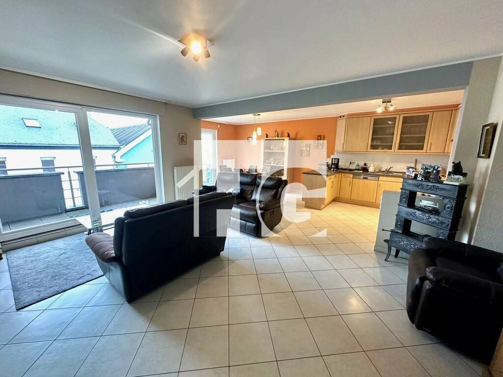Situé au centre du village, l'appartement, situé au 2e étage, se compose comme suit: - Hall d'entrée - Salle de douche - WC avec raccordements pour machine à laver - 2 chambres - Grand séjour avec cuisine équipée américaine et balcon