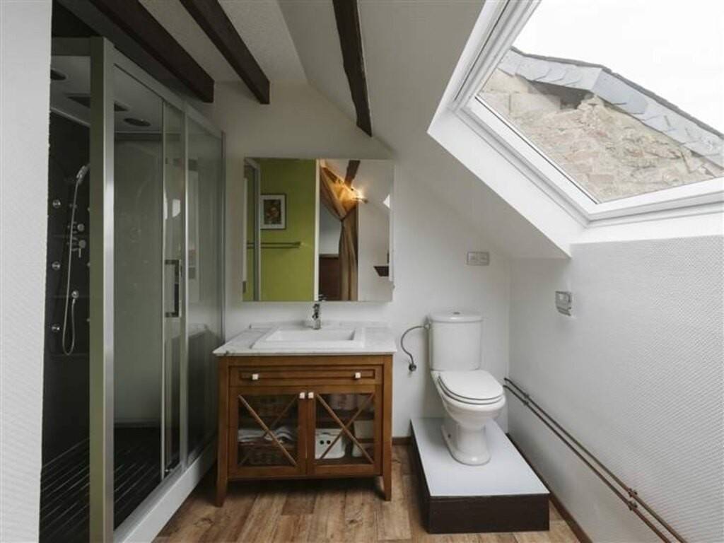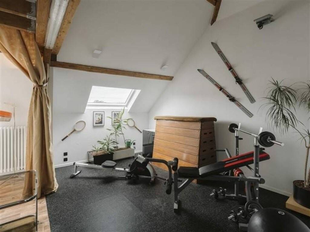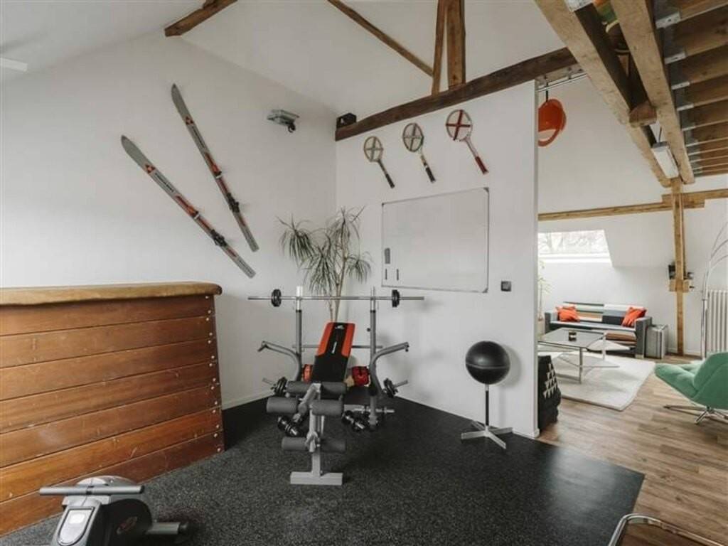 Au dernier étage, vous découvrirez un espace polyvalent pouvant faire office de chambre ou séjour avec sa salle-de-bain, un espace sport ou salle-de-jeux, sublimés par de magnifiques poutres apparentes, et donnant accès à une chambre mansardée en mezzanine.