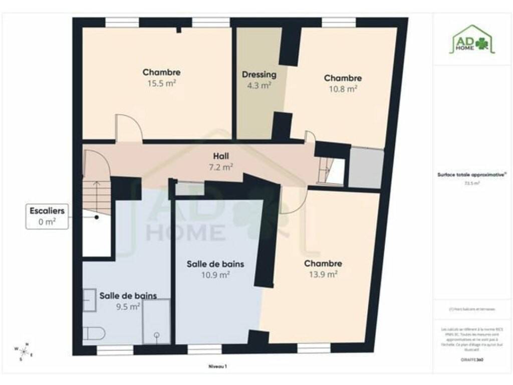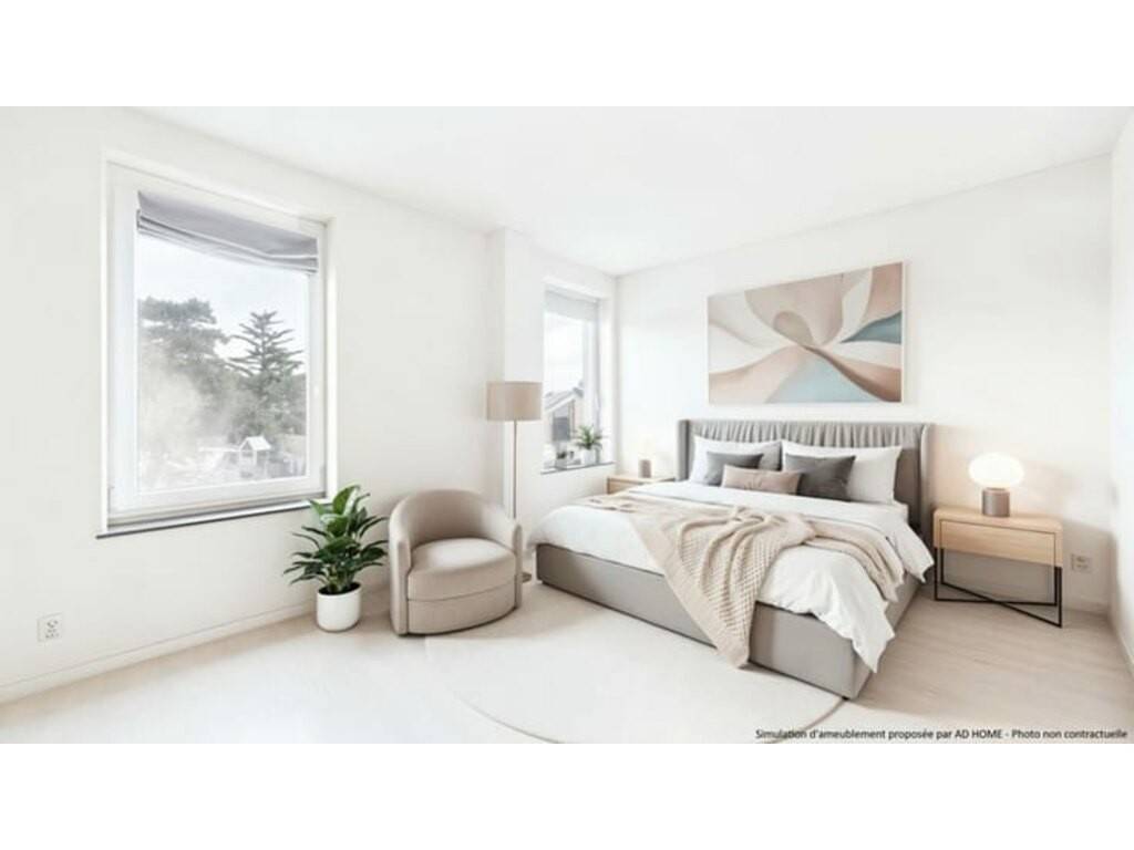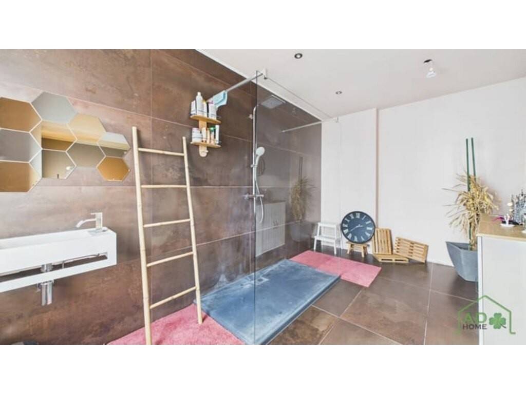 À l’étage, le hall de nuit dessert deux chambres, une salle de douches contemporaine ainsi qu’une suite parentale offrant une chambre spacieuse et sa salle de douches privative, véritable cocon d’intimité.