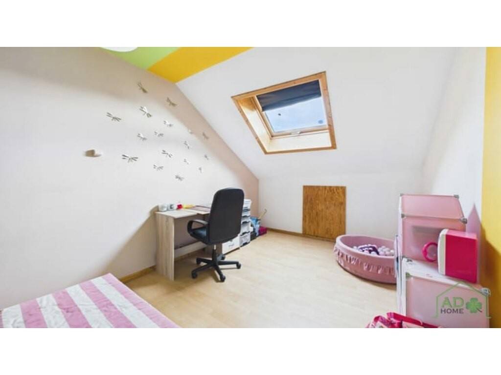 Le deuxième étage accueille un grenier intelligemment aménagé en deux espaces distincts : un bureau propice au télétravail et une vaste chambre supplémentaire, pouvant aisément se transformer en salle de jeux ou en espace créatif.