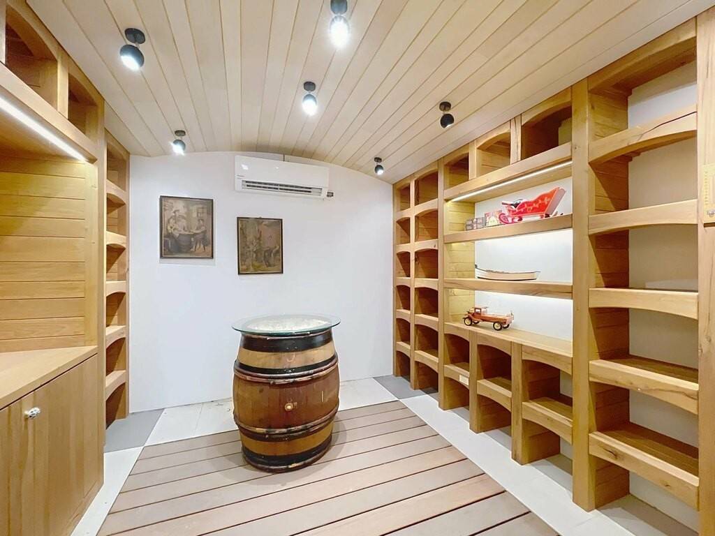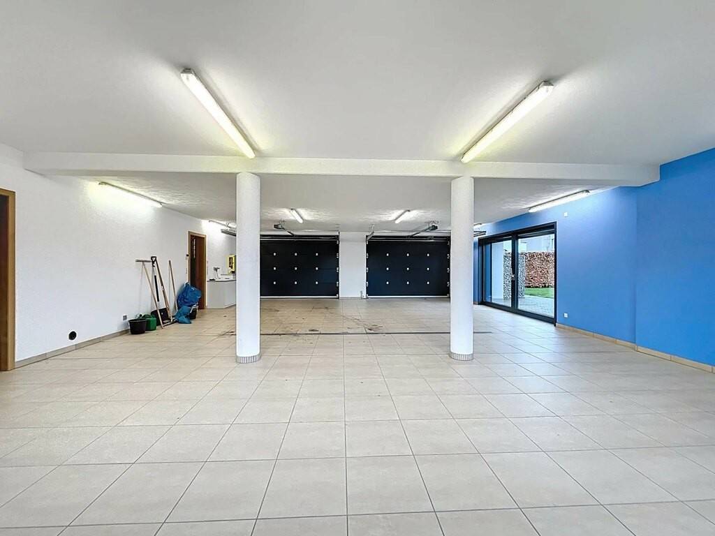Au rez-de-chaussée se trouve un impressionnant garage d’environ 105m² avec accès direct à la terrasse et au jardin soigneusement entretenu. Ce niveau comprend également une salle de bains, un WC séparé, un hall d’entrée accueillant ainsi que plusieurs pièces fonctionnelles telles qu’une grande cave, un local technique, une buanderie et une élégante cave à vin.