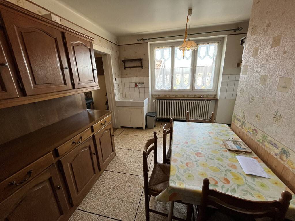 Maison de village d'environ 115 m² sur un terrain clos et arboré. Elle comprend au rez-de-chaussée, véranda, garage et buanderie. Possibilité de 2 chambres 25 et 12 m² environ. à€ l'étage : cuisine de 10 m², séjour de 18 m², deux chambres spacieuses (14 et 15 m²), salle de bains avec douche et WC séparés. Un grenier partiellement aménageable offre des possibilités supplémentaires. Jardin de 6,04 ares et verger de 8,36 ares. Chauffage au fioul, toiture en très bon état. Travaux à prévoir. Tous les étages sont sur dalle béton. Beau potentiel à exploiter !