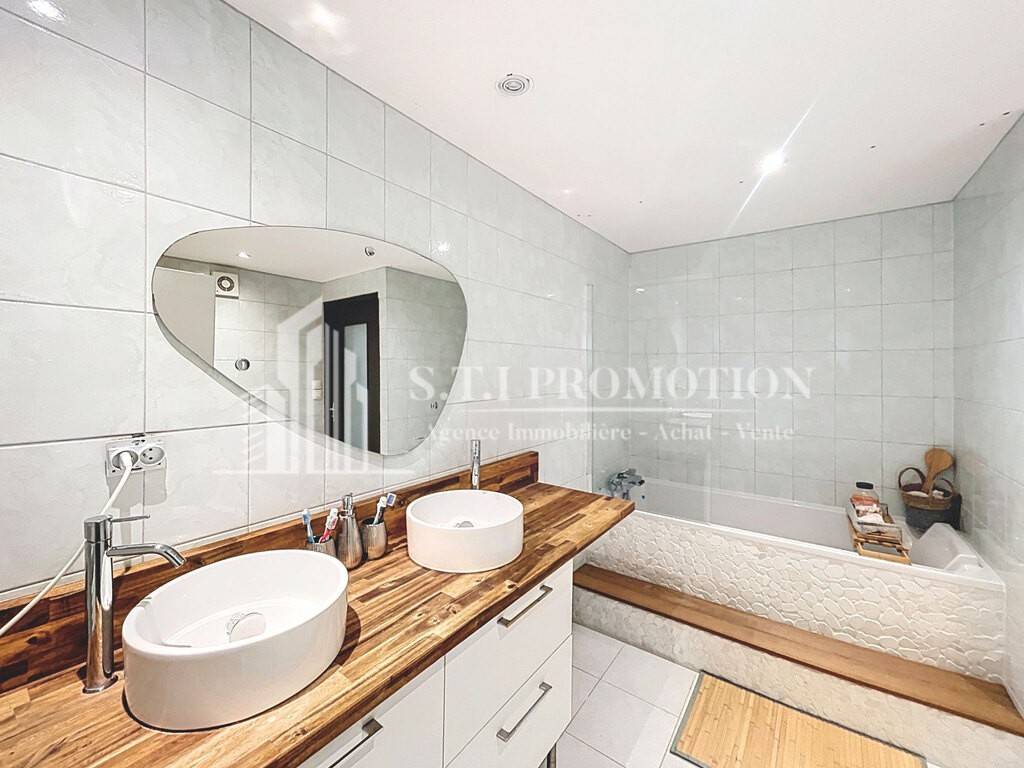 Dès l’entrée, vous découvrirez un vaste séjour lumineux, offrant un espace de vie convivial et chaleureux, idéal pour recevoir, complété par un WC indépendant. En rez-de-jardin, la maison propose une cuisine entièrement équipée, bénéficiant d’un accès direct à l’extérieur, ainsi qu’une grande salle de bains équipée à la fois d’une douche et d’une baignoire, et une buanderie / chaufferie, apportant un réel confort au quotidien.
