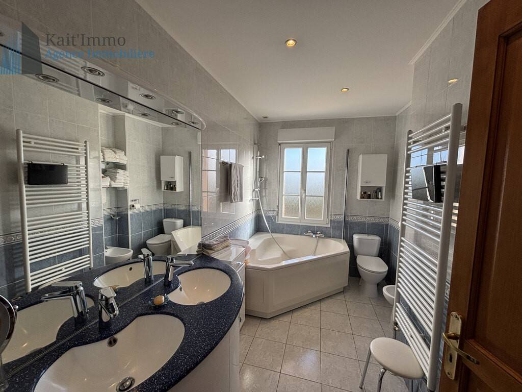 4 chambres, un vaste salon/salle à manger avec cheminée, ouvrant sur une belle terrasse, une cuisine équipée, une salle de bain, une lingerie, ainsi qu’un sous-sol entièrement aménagé, avec salon de lecture, une chaufferie, une deuxième salle d'eau, 3 wc et un double garage de 63 m2 pouvant accueillir trois voitures.
