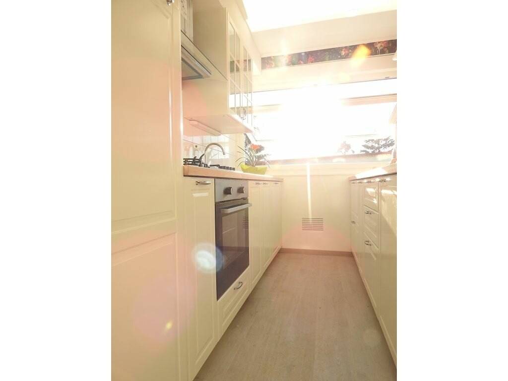 Une Cuisine séparée, exposition plein sud, cuisine intégrée et équipée d'un four, d'une plaque vitrocéramiques, d'une hotte, d'un réfrigérateur combiné congélateur et d'un lave-vaisselle.
