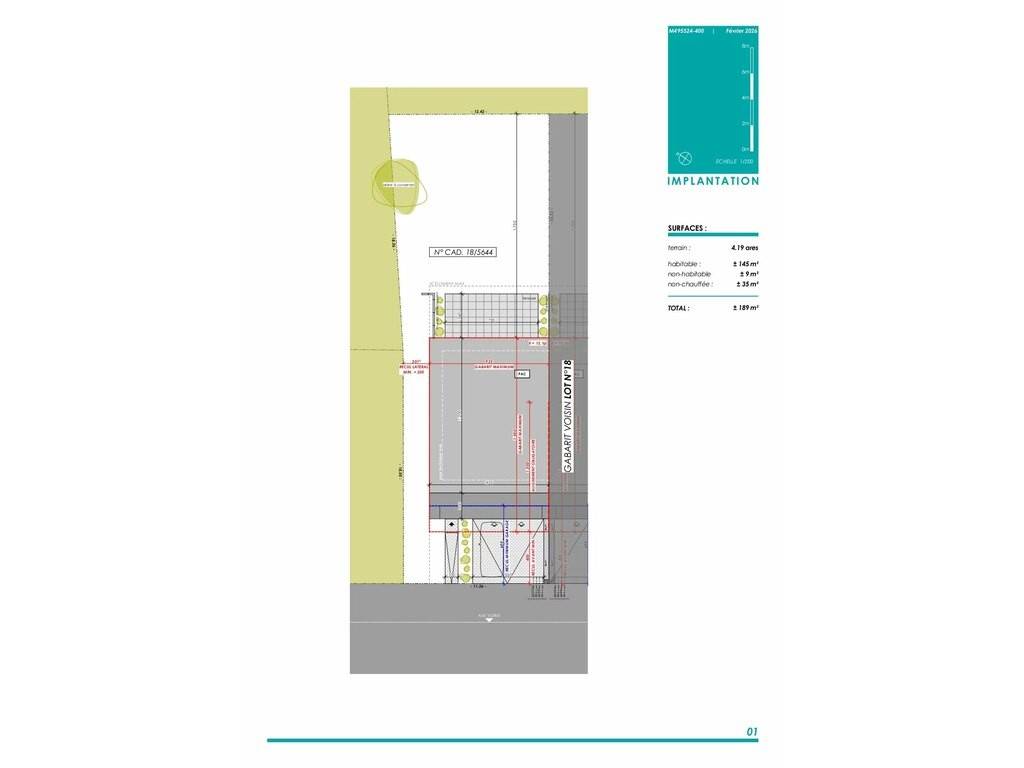 LOT 19: Maison unifamiliale jumelée sur un terrain de 4.19 ares avec une surface habitable de +/- 145m2 et une surface totale de +/-189m2 comprenant: