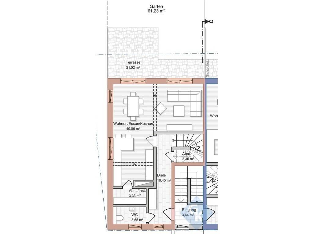 - Grande terrasse ensoleillée (orientation sud) de 21,52 m²