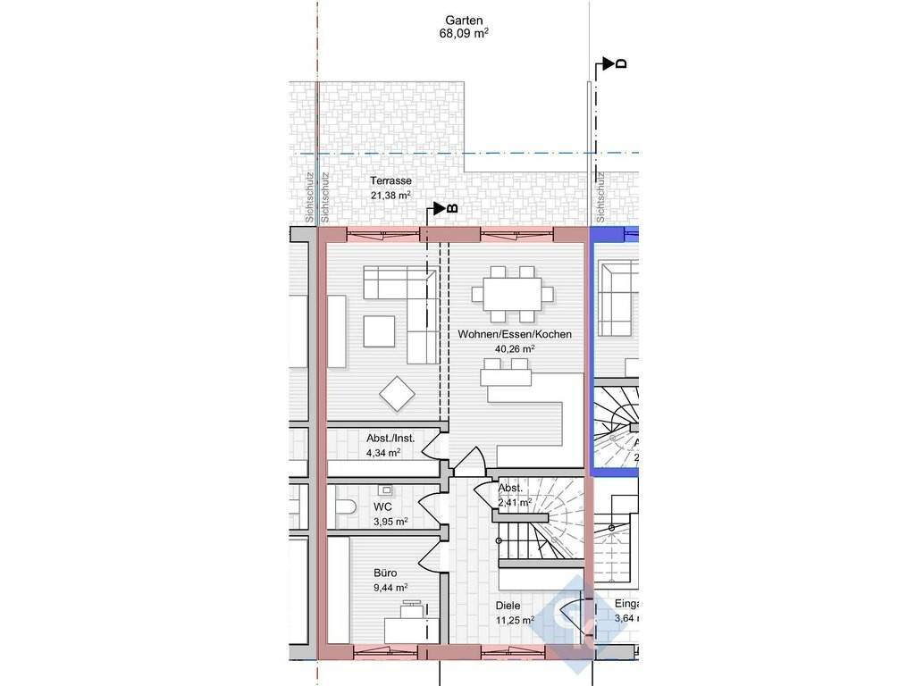 - Grande terrasse ensoleillée (orientation sud) de 21,38 m²