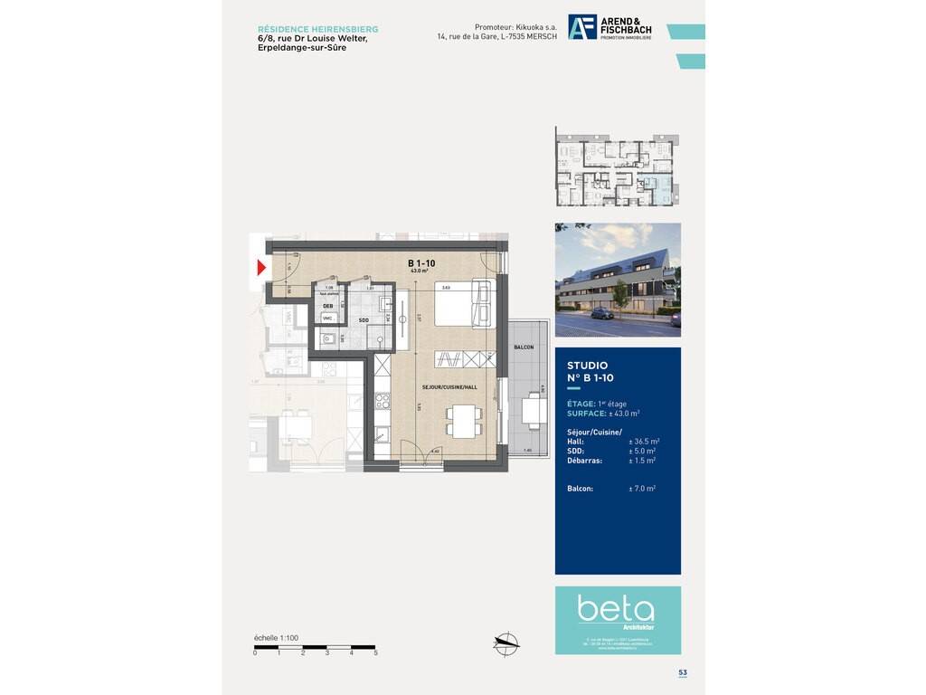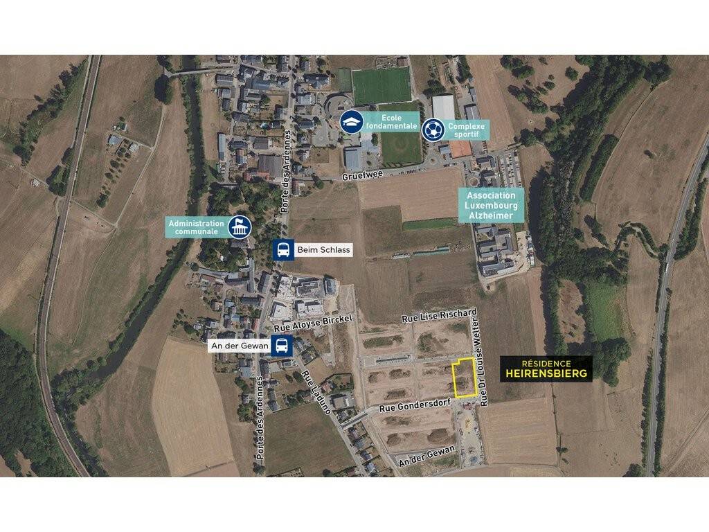 La résidence « HEIRENSBIERG » se situe à Erpeldange- sur-Sûre, 6/8, rue Dr Louise Welter dans le nouveau lotissement « In der mittelsten Gewan ». Elle sera implantée sur un terrain de 28,58 ares.