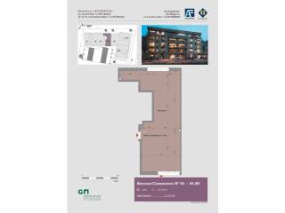 En façade principale se trouvent les entrées pour piétons et l'accès au garage commun. La résidence comporte un sous-sol, un rez-de-chaussée et quatre étages. Au sous-sol nous retrouvons les emplacements privatifs, les caves, les locaux communs et autres locaux techniques. Le rez-de-chaussée est réservé aux commerces et les étages sont réservés à l'habitation ou toute destination admise par les règlements.