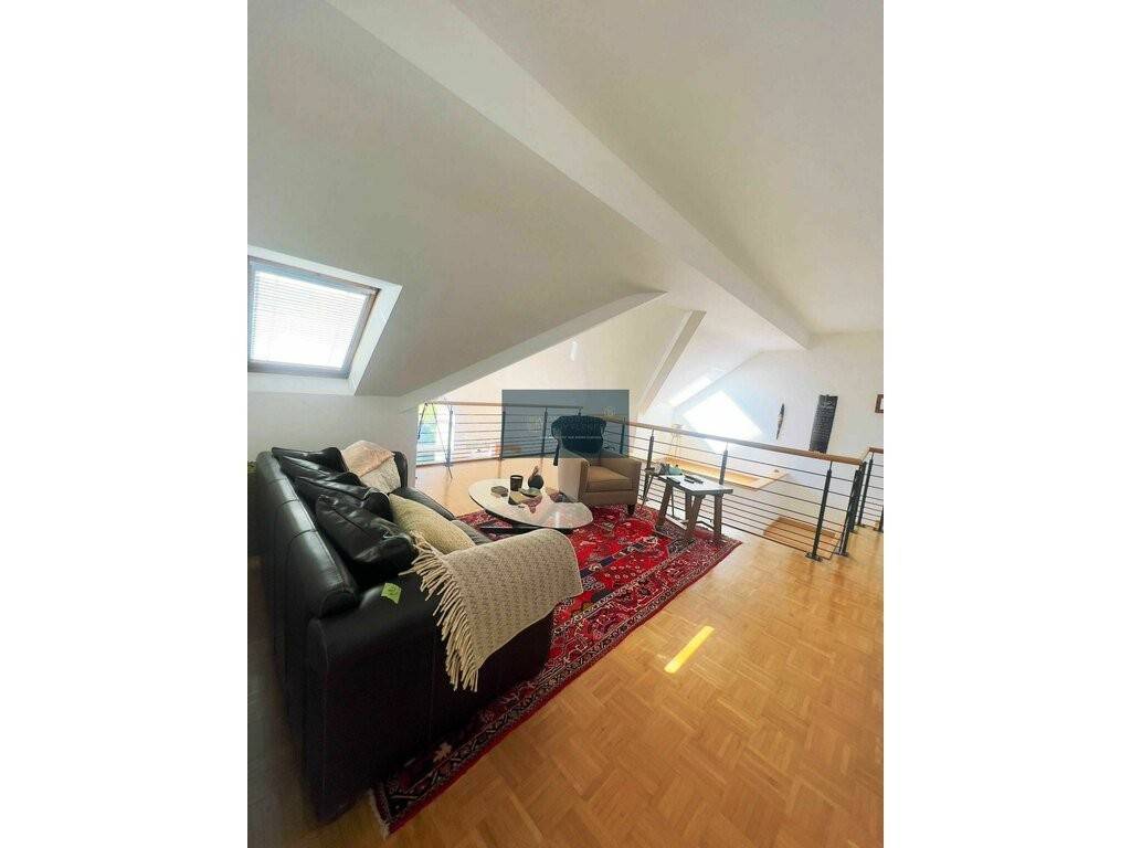 Mezzanine de 30m2, 4 chambres à coucher de respectivement 21,84m², 16,70m², 17,38m² et 21,84m², dont 2 avec balcon velux-cabrio, 2 grandes salles de bains, 1 salle de douche, sauna, grand grenier