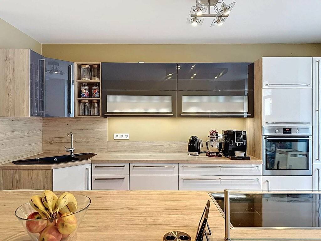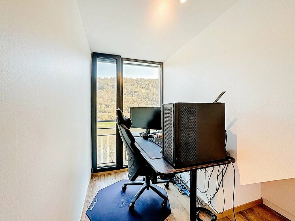 • un hall d'entrée • une cuisine équipée ouverte (haut de gamme) comportant un îlot central et un petit •. débarras • un beau salon/une salle à manger avec vue sur la Moselle