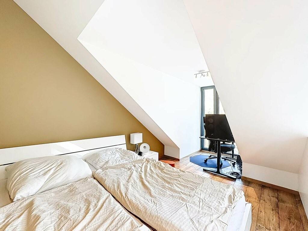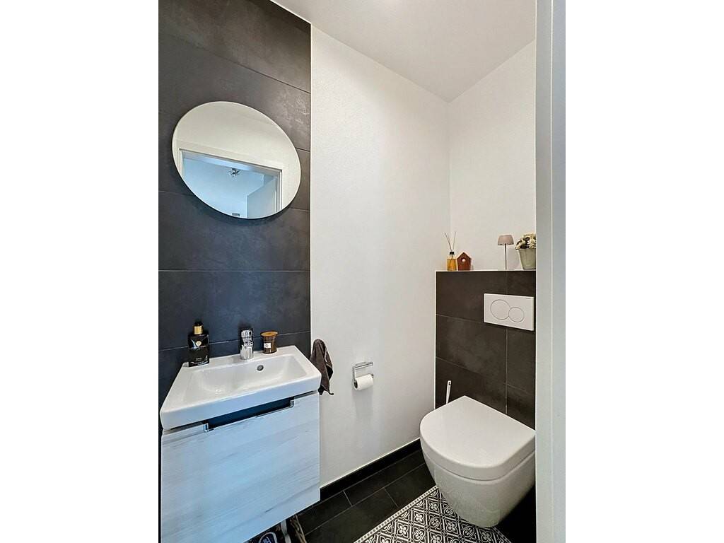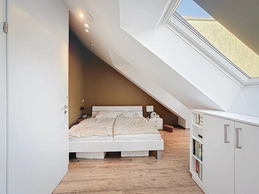 • 2 chambres à coucher, en partie sous pente (dont une avec ses armoires encastrées sur mesure) • salle de bains avec douche, lavabo • WC séparé