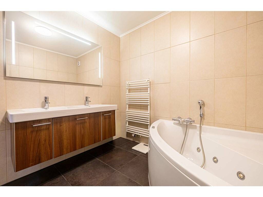 · Hall d’entrée · Deux chambres à coucher avec accès direct à leur terrasse privative · Salle de douche avec baignoire · WC séparé · Buanderie · Suite parentale avec salle de bain attenante et son propre balcon privé