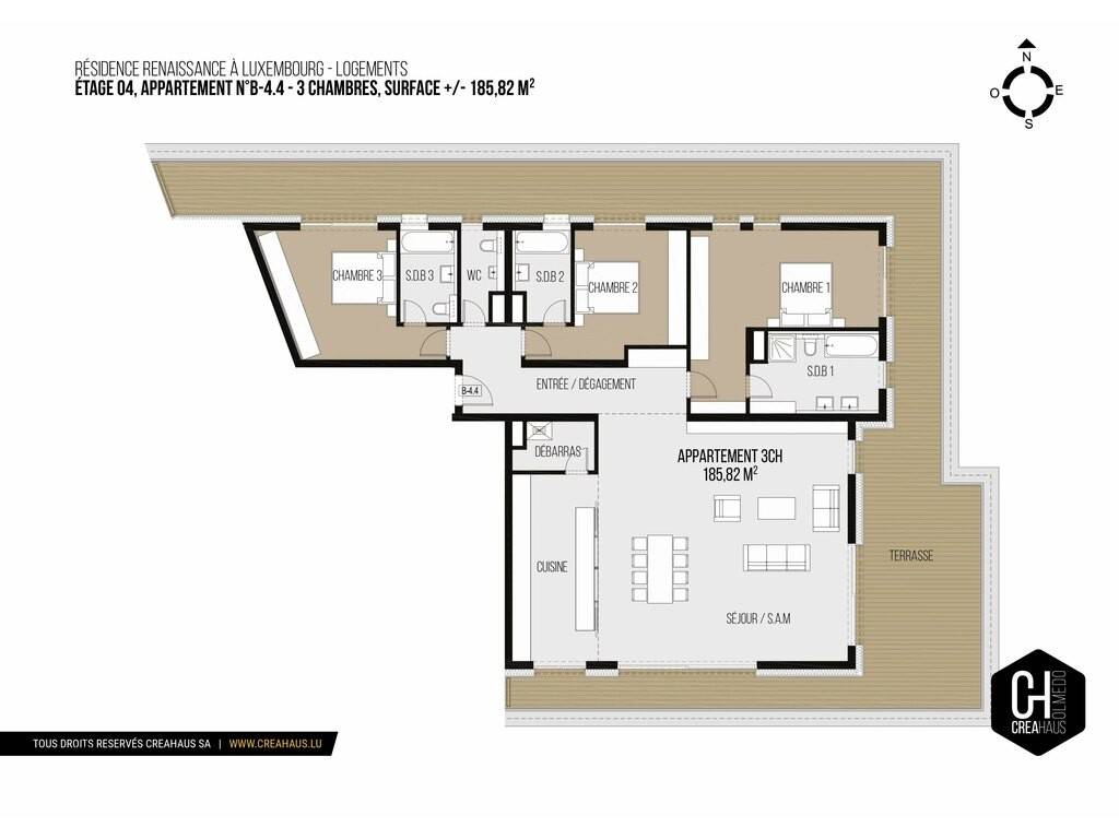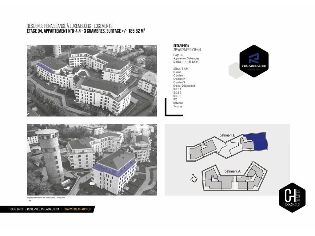 Creahaus a le privilège de vous présenter ce somptueux penthouse neuf de haut standing, d’une surface d’environ 186 m², situé au 3ème et dernier étage de la prestigieuse résidence RENAISSANCE, sur la route d’Arlon dans le quartier recherché de Belair.