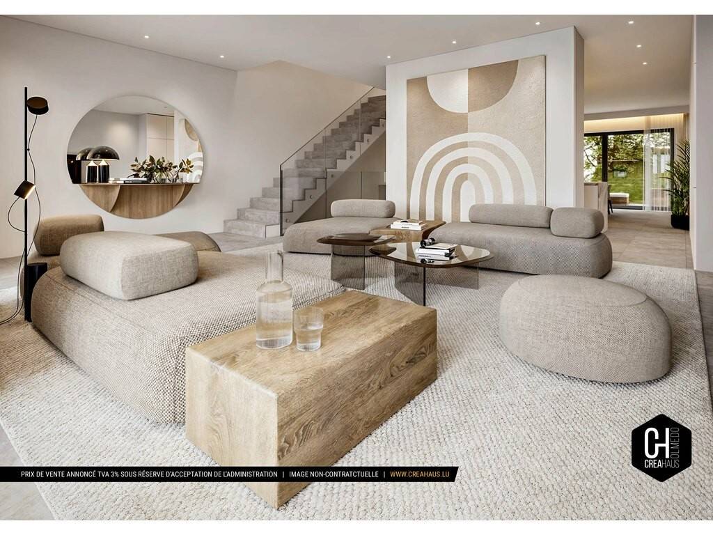 Creahaus vous propose en exclusivité cette maison contemporaine de 4 chambres, implantée sur un beau terrain de 3,24 ares, au cœur d’un quartier résidentiel calme et verdoyant à Oberanven (commune de Niederanven).