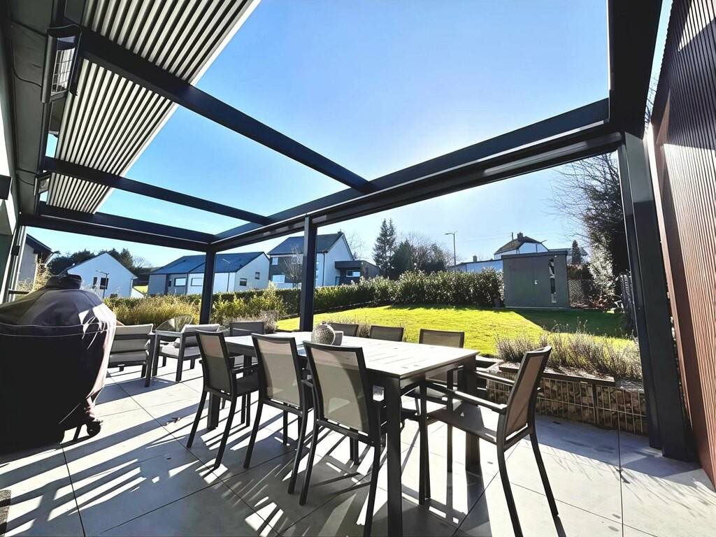 - Terrasse ≈ 40 m² plein sud avec pergola rétract, éclair, rideaux électriques chauffage d’appoint